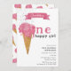 Convite 1rua Primeiro Aniversário Um Sorvete Rosa Feliz