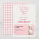 This sweet first birthday invitation features a soft pink gingham background with a charming watercolor duck and bow design. Perfect for celebrating a little girl’s first birthday, this invitation feels playful, gentle, and timeless.