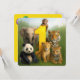Young wild animals are posing in tall green grass next to a large gold number one.