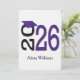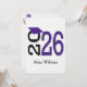 Ano de graduação de 2025 em texto roxo e preto sobre fundo branco. O nome e as informações da parte traseira são editáveis.