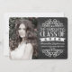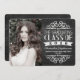 Tema divertido do quadro de referência "A Classe de Formatação", com fundo de giz de cinza de ardósia e cartazes tipográficos de vintagem branca com espiral e elementos de rolagem em um texto de script de estilo manuscrito. Adicione uma foto de classe de mais velho e inclua detalhes de festa de formatura na parte traseira. Celebre os formandos com este design único histórico e nostálgico!