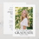 A classic graduation commencement invitation featuring a custom photo and traditional typography. This elegant design presents a formal, minimalist layout and timeless sense of style. Upload your own photo, and personalize the text with the graduate's name, parents' names, qualification title, educational institution, graduation year, and ceremony details. Printing colors: black and white, or customize the color to match your university, school, or college. Available as a printed card or a digital download. Explore the online collection for matching design templates!