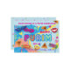 Happy Purim Festival Modern Invitation card for Family or Kids Party. Translation from Hebrew: Happy Purim! Purim Jewish Holiday poster with stars of David, traditional Hamantaschen cookies, gragger toy noisemaker, balloons, musicians, masks, Purim basket, festive confetti, fireworks colorful background.