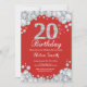 Convite de Aniversário de 20. Fundo do Quadro de Diamantes do Rhinestone Vermelho e do Prata. Convite para o Elegante Birthday Bash.Preto & Branco. Aniversário Adulto. Aniversário das mulheres. Homens Aniversário.