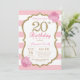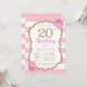 Convite de aniversário de 20. Rosa e Dourado. Dourada Glitter. Listras brancas e rosa. Flor Floral Rosa. Aniversário Adulto. Festa de aniversário feminina. Para mais personalização, clique no botão "Personalizar" e use nossa ferramenta de design para modificar este modelo.