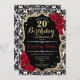 20 Aniversário Convite Elegante design branco vermelho-preto com ouro brilhante. Apresenta damask e rosas. Perfeito para uma bolsa mensageifesta de aniversario elegante.