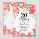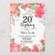 20 de Aniversário do Botânico Vermelho Convite de Aniversário para Mulheres de Rosa Floral Flor Floral de Água. Rosa Rosa Rosa Elegante e Flores de Pequim. Aniversário Adulto. Fundo Branco.Preto & Branco. 13 15 16º 18º 20 21 rua 30 40º 50º 80 de 60º 70 de 100º, qualquer idade.