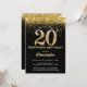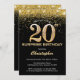 Convite 20 de Aniversário Surpresa Preto e Dourado Brilho