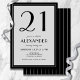 Celebrate turning twenty-one in sophisticated style with this black and light gray 21st birthday invitation for men or women. Designed with bold typography on a sleek minimalist layout, it blends modern elegance with timeless appeal. The back features clean black and gray stripes for a refined, polished finish. Perfect for an adult milestone birthday, formal dinner, or chic cocktail party, this customizable invite sets the tone for an unforgettable 21st celebration. Personalize with your event details for a stylish, gender-neutral design ideal for modern milestone birthday party.