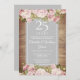 Com guirlandas de rosas em painéis de madeira rústica ao fundo boho, este convite de aniversário vintage pode ser personalizado com as informações da sua celebração especial de 25 anos de aniversário, com um fundo prateado no verso. Criado por Thisisnotme©