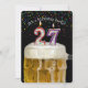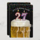 Número 27 velas em caneca de cerveja com confete colorido em preto para o convite da 27ª festa de aniversário.