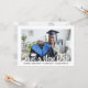 Se circunstâncias inesperadas causaram um adiamento ou cancelamento de sua festa de formatura, informe a família e os amigos sobre a mudança nos planos com esses simples minimalistas modernos e salve os novos convites para cartão postal. Todas as fotos e textos são simples de personalizar para incluir o nome do formando, o ano de aula, a escola e outros detalhes do evento. (DICA DE IMAGEM: Uma maneira fácil de centralizar uma foto exatamente como você deseja é recortá-la antes de carregá-la no site do Zazzle.) Design apresenta caligrafia de script de estilo manuscrito, deco de arte de na moda vintage inspirou tipografia e duas fotos de sua escolha, como fotos de mais velho ou imagens da cerimônia de inauguração. Este elegante cartão de anúncio de graduação é uma maneira moderna e chique de começar sua celebração especial de dia e convidar convidados para salvar sua nova data reprogramada. Parabéns ao formando!