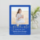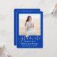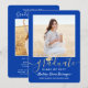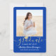 Convide a família e os amigos a celebrarem um segundo grau ou formandos com convites para fotos reais, azuis, brancos e ouro, personalizados com 2 fotos. Todas as imagens e textos são simples de personalizar. (DICA DE IMAGEM: Uma maneira fácil de centralizar uma foto exatamente como você deseja é recortá-la antes de carregá-la no site do Zazzle.) Observe que o ouro é impresso a cores, não em folhas metálicas. O design apresenta uma caligrafia elegante com um boné de conselho de argamassa, uma elegante tipografia moderna e duas fotos de sua escolha, como fotos de mais velho ou imagens da cerimônia de início. Esta elegante carta de convite para a formatura é uma maneira moderna e chique de começar a sua celebração especial. Parabéns ao formando!