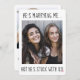 Uma maneira séria de pedir a sua amiga para compartilhar seu dia especial é dar a ela um presente personalizado de colagem de fotos que ela pode guardar como um guardião. Este cartão de convite de apresentação de propostas moderna chique é uma maneira elegante de dizer "você será minha madrinha de casamento/dama de honra?" Todas as imagens e textos são simples de personalizar, incluindo uma mensagem engraçada na frente que diz "ele está se casando comigo, mas ele está preso conosco." (DICA IMAGEM: Uma maneira fácil de focalizar uma foto exatamente como você quer é recortá-la antes de ser carregada no site do Zazzle.) O design preto e branco apresenta duas fotos de amizade de sua escolha, caligrafia moderna com script manuscrito, tipografia minimalista da máquina de escrever, e um coração rosa bonito. Esta modelo de cartas de apresentação é uma maneira única de pop a pergunta ao seu bff e fazer a celebração do casamento começar em estilo.