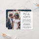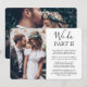 Convide familiares e amigos para testemunhar o momento em que você diz "sim" novamente com um elegante convite de casamento moderno com 2 fotos. Toda a redação é simples de personalizar, incluindo a citação que diz "nós fazemos parte II". Personalize-o para qualquer tipo de celebração de casamento, como uma cerimônia de renovação de votos, recepção de 1º aniversário, festa pós-fuga, coquetel ou jantar. Personalize com os detalhes de sua escolha, incluindo data de casamento, RSVP, código de vestimenta, site, etc. (DICA DE POSICIONAMENTO DE IMAGEM: Uma maneira fácil de centralizar uma foto exatamente como você deseja é cortá-la antes de fazer o upload para o site da Zazzle.) O design moderno minimalista preto e branco apresenta duas fotos do casal recém-casado, caligrafia de script manuscrita na moda e tipografia estilo máquina de escrever chique. Quer você tenha fugido devido à pandemia de covid ou reduzido para uma minúscula, mais íntima, ou micro-casamento, a festa do