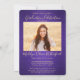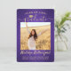 Compartilhe a alegria de um segundo grau ou formandos e convide a família e os amigos a celebrarem com estes convites de festas personalizados de 2 fotos, roxo e ouro. Todas as imagens e textos são simples de personalizar. (DICA DE IMAGEM: Uma maneira fácil de centralizar uma imagem exatamente como você deseja é recortá-la antes de carregá-la no site do Zazzle.) Este modelo é formatado para uma festa de formatura, mas pode ser facilmente personalizado como um convite ou um cartão de anúncio de casa aberta. Simplesmente mude o texto para incluir quaisquer detalhes de sua escolha, como nomes de pais, honras especiais, título de grau, citação de inspiração favorita, planos futuros de formandos ou novo endereço. Se houver algum texto não desejado, simplesmente exclua-o. Design apresenta um fundo roxo escovado, boné falso de morteiro de folha de alumínio, caligrafia de script de estilo manuscrito, tipografia moderna minimalista e duas fotos de sua escolha, como fotos de mais velho ou imagens da cerimônia inicial. Observe que o ouro é impresso a cor, não a folha metálica. Estes cartões de anúncio elegantes de formatura são uma forma na moda para compartilhar sua celebração especial com a família e os amigos. Parabéns ao formando!