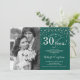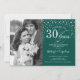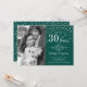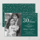 Convite de 30º Aniversário de Casamento com Foto. Design elegante em prata e verde esmeralda com fonte de caligrafia e confetes. Pode ser personalizado para mostrar qualquer ano de casamento. Saúde por 30 anos!