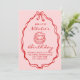 Se você procura um convite único e elegante, facilmente editado, para aniversário de 30 anos, este é perfeito para você. Como vocês podem ver, ele apresenta um roteiro escrito de mão vermelha com nome caprichoso e redação de aniversário em fundo retrocor-de-rosa. Com a mão vermelha colorida desenhada, um arco de vidro martini dentro no 30. E um quadro ondulado de fita de arco desenhado pela mão vermelha. E RSVP nas costas. Com informações inteiras que podem ser personalizadas facilmente clicando no botão personalizar. Este convite de aniversário de tendências Quirky e exclusivo também é um convite eletrônico digital se você quiser enviá-lo por e-mail ou texto. Então pegue e faça seus convites verdadeiramente engajados.