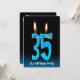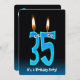 Aqua e fundo de gradiente azul com globos oculares em velas para o 35º Convite de aniversário.