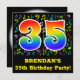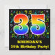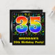 A frente deste design de convite de aniversário divertido, excitante e colorido apresenta um grande número "35" com um padrão inspirado no gradiente do espectro arco-íris, junto com um nome personalizado e a mensagem "35ª Festa de aniversário!". Parte do fundo tem notas de música e padrões de símbolos divertidos e coloridos. A parte traseira apresenta detalhes editáveis sobre o evento para o qual os possíveis convidados estão sendo convidados. Cartões de convite para comemorações de aniversário divertidos e personalizados como este podem ser enviados a potenciais hóspedes de uma festa que está a ser realizada para honrar um compositor de música, um cantor, um músico ou o 35.º aniversário de alguém. [~Z0000427]