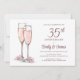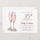 Levantem um copo conosco enquanto brindamos ao nosso 35º aniversário de casamento. Este convite elegante, com dois óculos de champanhe cor-de-rosa, é a forma perfeita de convidar seus amigos e família a se juntarem à alegria, riso e lembranças queridas. Você pode adicionar facilmente todos os detalhes necessários ao texto personalizável. Escolha entre vários tipos de papel e estilos de canto para tornar seus convites exclusivos. Além disso, você tem a opção de baixar o convite se preferir um formato digital.