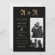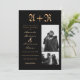 Fotos personalizadas de 3 casais no convite de casamento preto com iniciais de monograma e Tipografia de Ouro em forma chic, simples e elegante.