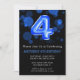 Balões de 4 anos crianças convite de festas de 4 anos para um garoto de 4 anos com escrevendo moderno e balões de folha azul divertidos.