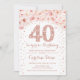 Convite de festas aniversário de 40 anos. Design elegante em ouro rosa e branco. Possui rosas cor-de-água pinceladas rosa, confetti e diamantes. Perfeito para uma comemoração de vidro.