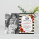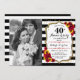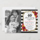 Convite de 40º Aniversário de Casamento com Foto. Design elegante em vermelho rubi e branco com dourado falso brilhante. Apresenta listras, fonte manuscrita, girassóis, rosas vermelhas e confetes. Pode ser personalizado para qualquer ano! Mensagem para mim se precisar de mais personalização.