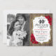 Convite de 40º Aniversário de Casamento com Foto. Design elegante em vermelho rubi e branco com dourado brilhante falso. Apresenta fonte de script de padrão de madeira marrom escuro, rosas vermelhas e confetes. Pode ser personalizado para qualquer ano! Mensagem para mim se precisar de mais personalização.