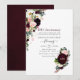 Convite de festa de aniversário de 40 anos de casamento com uma pedra preciosa de rubi monogramada decorada com flores de rosa desbotado e ameixa borgonha profunda e pedras geométricas.