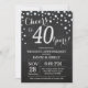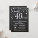 40º Aniversário de Casamento Convite Preto e Prata. Quadragésimo Aniversário de Casamento. Fundo de Diamante Preto e Prata com Brilho. Confetes Prata. Aniversário de Adulto. Festa de Aniversário de Homem ou Mulher. Para personalização adicional, clique no botão "Personalize" e use nossa ferramenta de design para modificar este modelo.