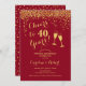 Convite de aniversário de casamento de 40 anos em vermelho rubi. Parabéns por 40 Anos! Design elegante em vermelho e dourado. Apresenta taças de champanhe, fonte manuscrita e confetes. Perfeito para uma celebração sofisticada de 40 anos de casamento. Convites Zazzle impressos ou modelo digital para download instantâneo. Pode ser personalizado para mostrar qualquer ano! Personalize com seus próprios detalhes.
