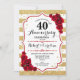 Convite 40º Aniversário - Rosas Brancas Vermelhas Douradas