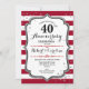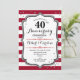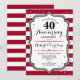 Convite de festa de aniversário de 40 anos de casamento vermelho rubi. Convite elegante vermelho, preto e branco com falsa prata brilhante. Apresenta listras elegantes e fonte de caligrafia. Perfeito para uma celebração de 40 anos de casados.