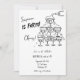Cartão de convite de aniversário de 40 anos, manuscrito e ilustrado à mão, que inclui uma torre festiva de champanhe. Saúde!