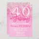 40 anos e Fabuloso convite de festas de aniversário de 40 anos de Aniversário, Rosa, de Convite, para uma criança de 40 anos, com escrevendo moderno de escrita e balões de folha divertida.