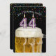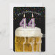 Número 44 velas em caneca de cerveja com confete colorido em preto para convite para festa de aniversário 44.