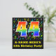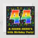 A frente desta design convite de aniversário divertida, vibrante e excitante apresenta um grande número "44" com um padrão inspirado no gradiente do espectro arco-íris, juntamente com um nome editável e a mensagem "Festa de aniversário 44!". Parte do plano de fundo apresenta um padrão divertido de várias notas e símbolos de música com várias cores e tamanhos. A parte traseira contém informações personalizáveis sobre o evento para o qual os possíveis convidados estão sendo convidados. Cartões de convite para comemorações de aniversário felizes e personalizados como este podem ser usados quando se convida convidados a comparecer a uma reunião para comemorar compositores de música, músicos, cantores ou quarenta e quarto anos de alguém. [~Z0000427]