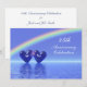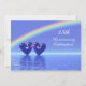 Convite de aniversário de 45 anos prateado com um arco-íris e dois corações de safira azuis flutuando na água. Personalize o texto de exemplo no verso com suas próprias informações para o seu evento.
