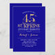 Surpresa 45º Convite à Celebração de Aniversário de Casamento. Design elegante em sapphire azul real e padrão de ouro brilhante. Apresenta uma fonte elegante de script. Envie-me uma mensagem se precisar de mais personalização.