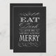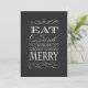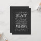 Um convite personalizável elegante com as palavras Comer, Beber e ser Feliz. É conveniente em muitas ocasiões.