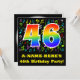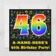 A frente desta design divertida, excitante e vibrante convite de aniversário apresenta um grande número "46" tendo um padrão inspirado no gradiente do espectro arco-íris. Também apresenta um nome personalizado e a mensagem "46ª Festa de aniversário!". Parte do fundo tem um padrão divertido de várias notas e símbolos de música com várias cores e tamanhos. A parte traseira apresenta detalhes editáveis sobre o evento para o qual os possíveis convidados estão sendo convidados. Cartões de convite de aniversário felizes e personalizados como este podem ser enviados a potenciais convidados de uma reunião comemorativa realizada para honrar um músico, um compositor de música, um cantor ou o quarenta e sexto aniversário de alguém. [~Z0000427]
