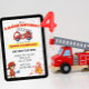 4 Alarm Fire Fighter 4th Birthday Invitation