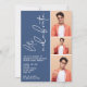 Convide os convidados para a sua festa de formatura com convites com uma foto na frente com a palavra Formando em letra chic, seu nome e seu ano de graduação. Uma grade de três fotos no verso é impressa com as informações da sua parte em azul ou qualquer cor - você pode mudar a cor com nossas ferramentas de edição. MAIS CORES e designs em nossa loja, incluindo anúncios, cartões salve a data e postais.