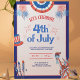 Junte-se às festividades com este vibrante e personalizável convite à comemoração de 4 de julho. Projetado para captar o espírito do Dia da Independência, este convite é perfeito para um encontro com amigos e familiares. A design apresenta um tema patriótico com sotaques vermelhos, brancos e azuis, ilustrações de fogos de artifício, e símbolos americanos icônicos como a Estátua da Liberdade e o chapéu do Tio Sam. A tipografia ousada e brincalhona adiciona um toque divertido, fazer convidativo e festivo. O que torna este convite especial é sua natureza personalizável. Você pode personalizar facilmente os detalhes, como a data, hora, local e informações de RSVP, garantindo que seus convidados tenham todas as informações necessárias para sua celebração. Perfeito para um evento de exibição de Dia de Independência, churrasco ou fogos de artifício, este convite definirá o tom de um encontro memorável.