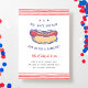 Um convite de festas divertido de 4 de julho com uma ilustração de cachorro-quente em um estilo bonito e desenhado à mão