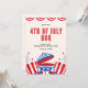 Atirem a grelha e preparem-se para celebrar o Dia da Independência em estilo com este convite festivo e personalizável para o CHURRASCO de 4 de julho. A design apresenta cores vermelho e azul ousadas, capturando a essência do patriotismo americano. O topo é enfeitado com o arranjo clássico, adicionando um toque de encanto tradicional, enquanto o fundo mostra uma ilustração divertida de uma grelha de CHURRASCO e bandeiras, estabelecendo o humor perfeito para um biscoito de verão. Este convite destaca-se com seu texto claro e ousado que convida seus convidados a se unirem na diversão. Os campos personalizáveis permitem personalizar a data, a hora, o local e os detalhes de RSVP, garantindo que todas as informações essenciais sejam personalizadas para o seu evento. Perfeito para uma reunião familiar ou uma festa de vizinhança, este convite para CHURRASCOS de 4 de julho vai garantir que a sua celebração seja uma para se lembrar.
