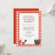 Fundo de toalha vermelha com um cozinheiro e uma banheira de cerveja. Convites engraçados são uma forma excelente de convidar convidados para o seu Cookout. Alterar a redação para usar convites para diferentes ocasiões. Use nossa modelo fácil para personalizar com suas informações.