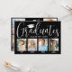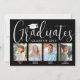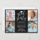 É uma festa de formatura comum! Anuncie a conquista de quatro formandos e convide a família e os amigos a celebrarem com convites personalizados de fotos de festa de formatura de na moda group. Todas as imagens e textos são simples de personalizar, e as cores podem ser personalizadas usando a ferramenta design Zazzle. (DICA DE IMAGEM: Uma maneira fácil de posicionar uma foto exatamente como você deseja é recortá-la antes de carregá-la no site do Zazzle.) Este modelo é uma placa de anúncio na frente com o convite de festas formando na parte traseira. O design moderno preto e branco apresenta uma caligrafia de script de estilo manuscrito com um boné de conselho de argamassa, uma elegante tipografia clássica e oito fotos de sua escolha, como fotos de mais velho ou imagens da cerimônia de início. Este convite de formatura é uma forma na moda para anunciar uma celebração especial para vários formandos, como irmãos, melhores amigos, primos, colegas de equipe etc. Parabéns aos formandos!